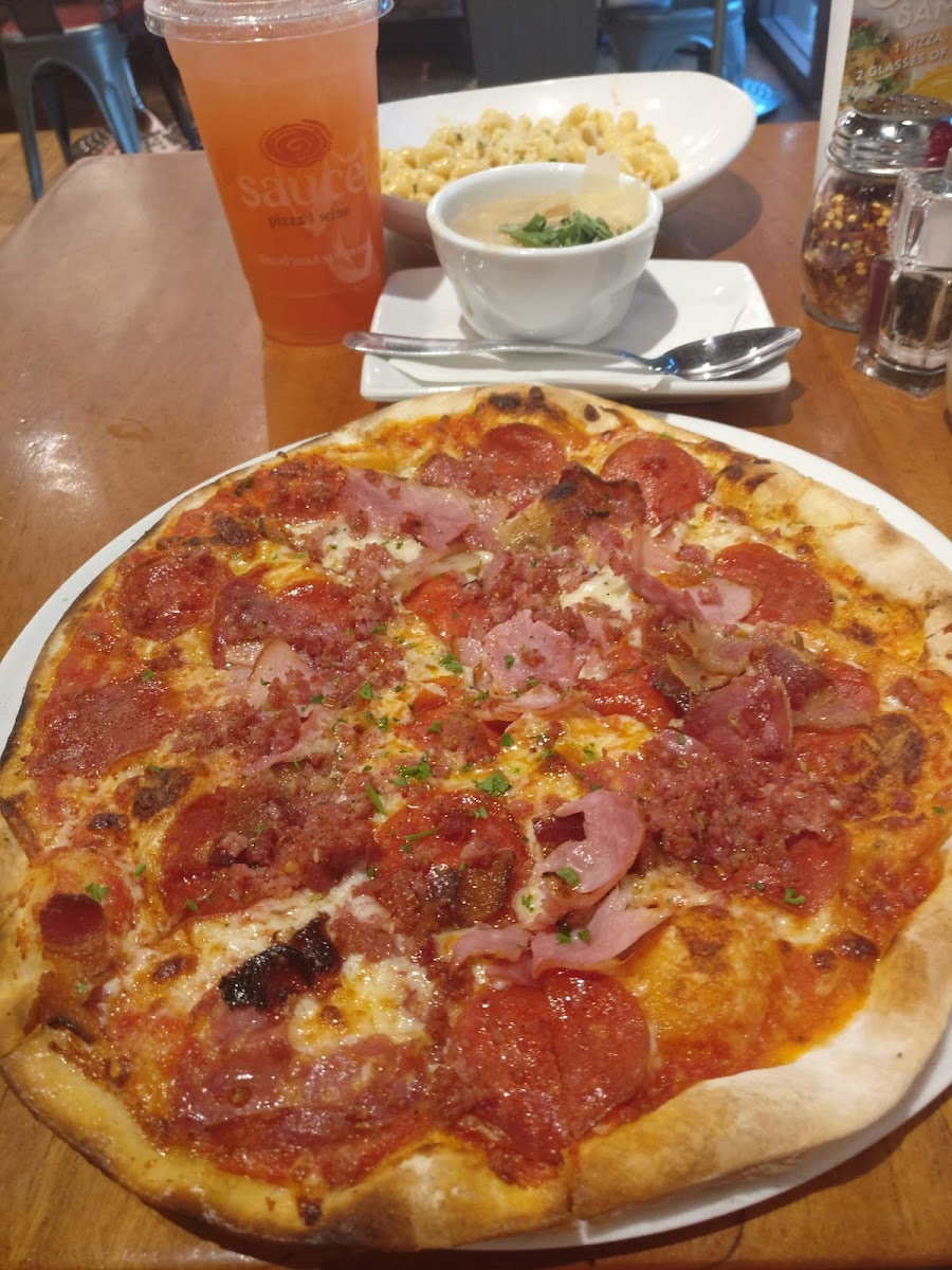 Whether you're stopping by for a quick lunch or settling in for a chill dinner, Sauce Pizza & Wine makes it easy with both dine-in and takeout options. The interior strikes a balance between cozy and modern, with warm lighting, open seating, and a casual ambiance that invites you to linger just a little longer. It’s the kind of place that makes you feel at home, but with a little extra flavor.